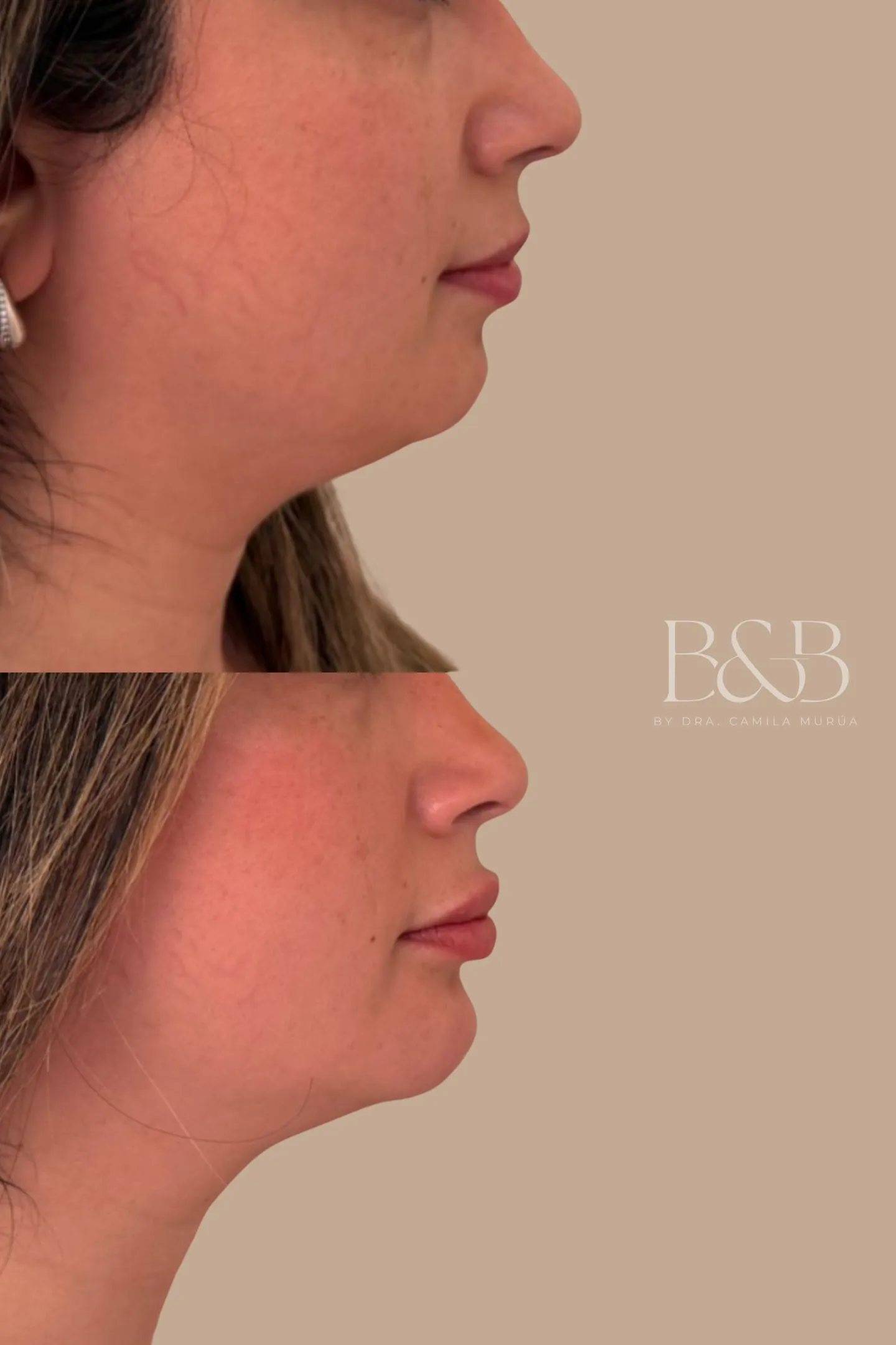 - Aplicación estratégica de lipolíticos mediante microinyecciones en la zona submentoniana.