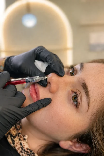 ⏱ Duración aproximada: 8 a 15 mesesLa rinomodelación es un procedimiento médico no quirúrgico que permite armonizar el perfil nasal mediante ácido hialurónico, corrigiendo pequeñas irregularidades y mejorando la proyección del dorso o la punta nasal de manera segura y natural. En Clínica B&B, el diseño nasal se realiza respetando la estructura facial de cada paciente, buscando equilibrio, proporción y resultados sutiles.